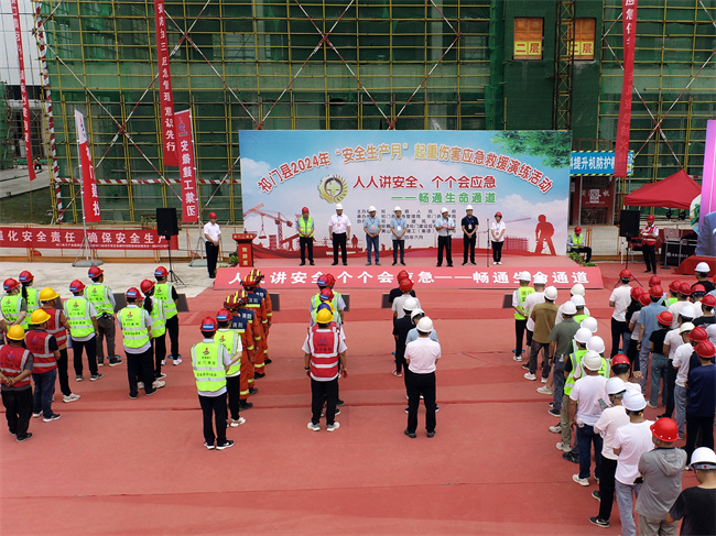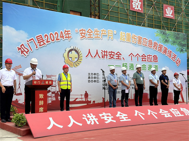 6月18 日,祁門縣2024年“安全生產月”起重傷害應急救援演練活動在祁門低碳科創園項目順利開展。祁門縣人民政府、祁門縣應急管理局、祁門縣住建局、祁門縣建筑業協會的相關領導,以及祁門縣內施工企業負責人、分管安全工作負責人、安全員和在建工程項目經理、外地施工企業項目負責人和安全員、在建工程監理負責人和建設開發項目負責人約200人現場觀摩。