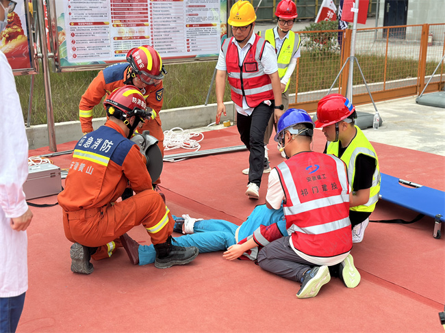整個演練過程緊張逼真、有條不紊,充分展現了項目團隊面對突發事故的高效應對能力和協同配合能力。此次演練活動不僅僅是一次對項目安全保障機制的一次實戰檢驗,更進一步強化了全體項目人員的安全意識,提高了應對突發事件的實戰能力。祁門低碳科創園項目將以此次活動為契機,持續加強安全管理,不斷完善應急預案,為項目的順利推進和人員的生命財產安全提供堅實保障。