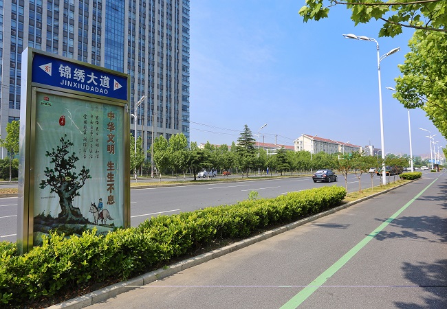 錦繡大道(蓬萊路-翡翠路)改造工程、始信路(紫云路-云谷路)改造工程和云谷路改造工程項目位于合肥市經濟技術開發區。錦繡大道翡翠路至蓬萊路段,全長1.92 km,現狀機動車道寬度為16米,中央分隔帶7米,雙向四車道,水泥砼路面。其中翡翠路~K0+290段道路北側有2.5米寬人行道;金寨路~青龍潭路段道路南側有4米寬非機動車道;青龍潭路-蓬萊路段道路南側有2.3米寬人行道,道路紅線總寬60米(含兩側綠化)。改造后橫斷面:翡翠路~K0+290段道路北側分隔帶由4.5米調整為6米,其余保持不變; K0+290~金寨路為標準段,即半幅為4米中分帶+11.5米機動車道+4.5米側分帶+3.5米非機動車道+3.5米人行道+3米綠帶。施工內容包括道路、排水、橋梁、交通、綠化、照明。