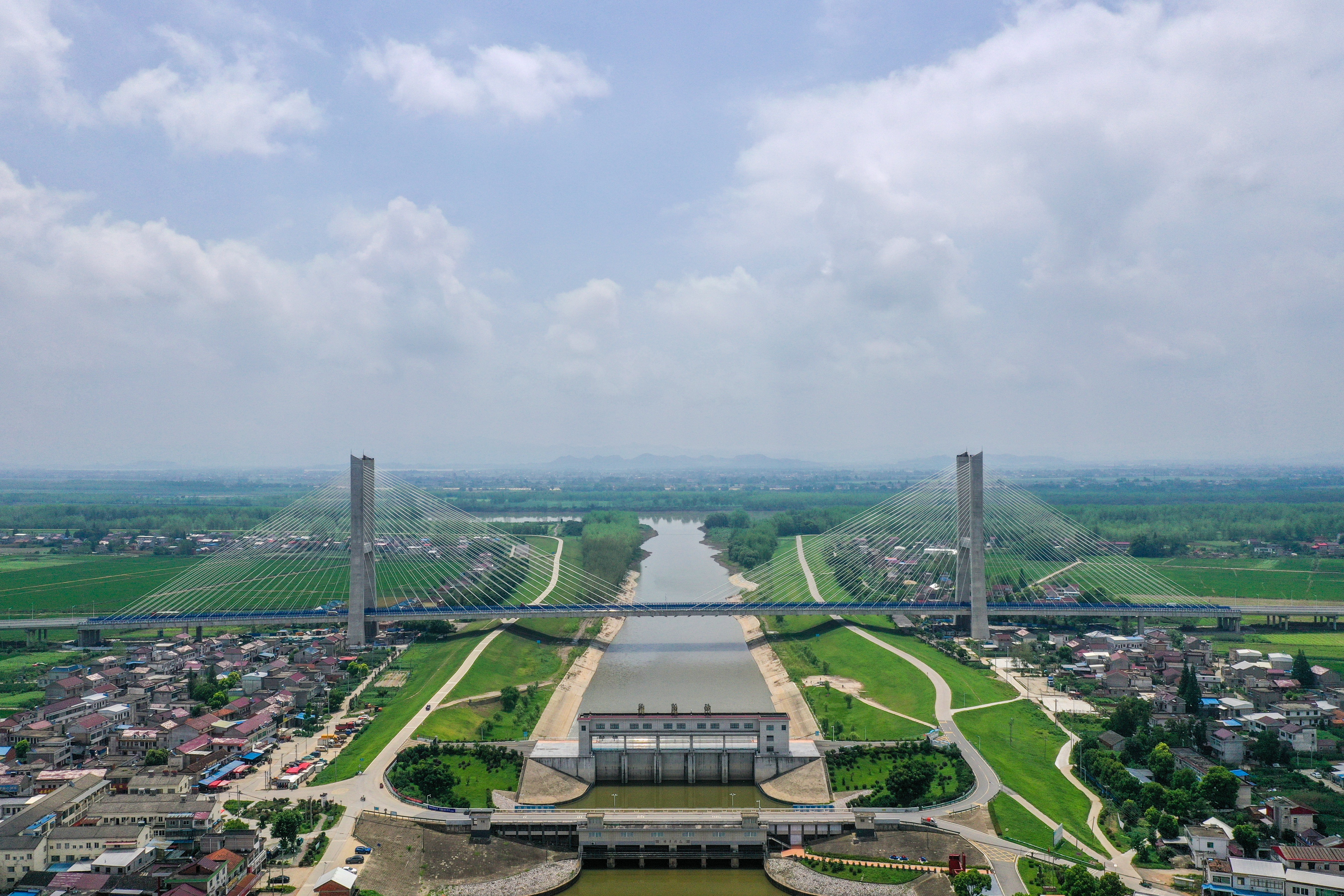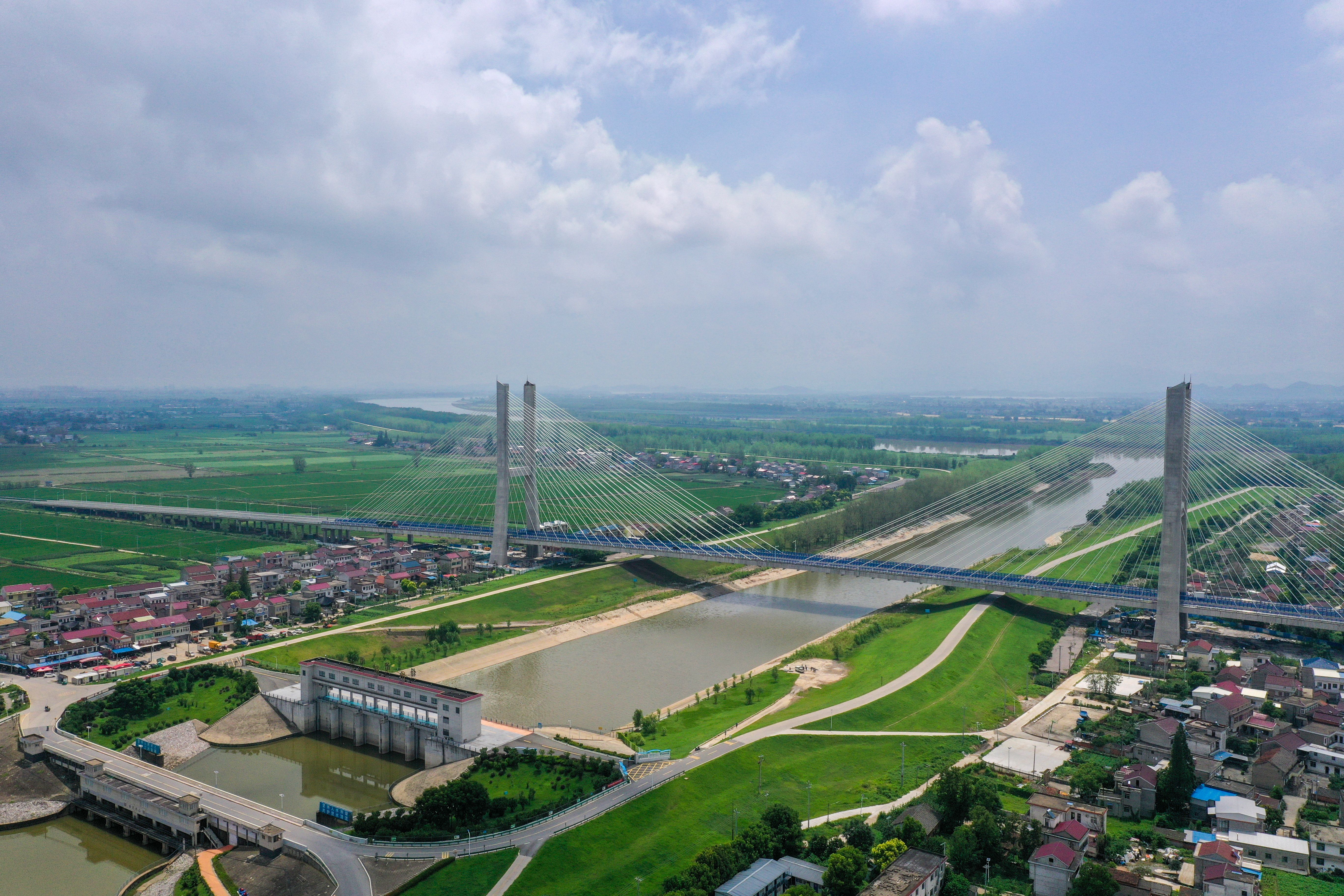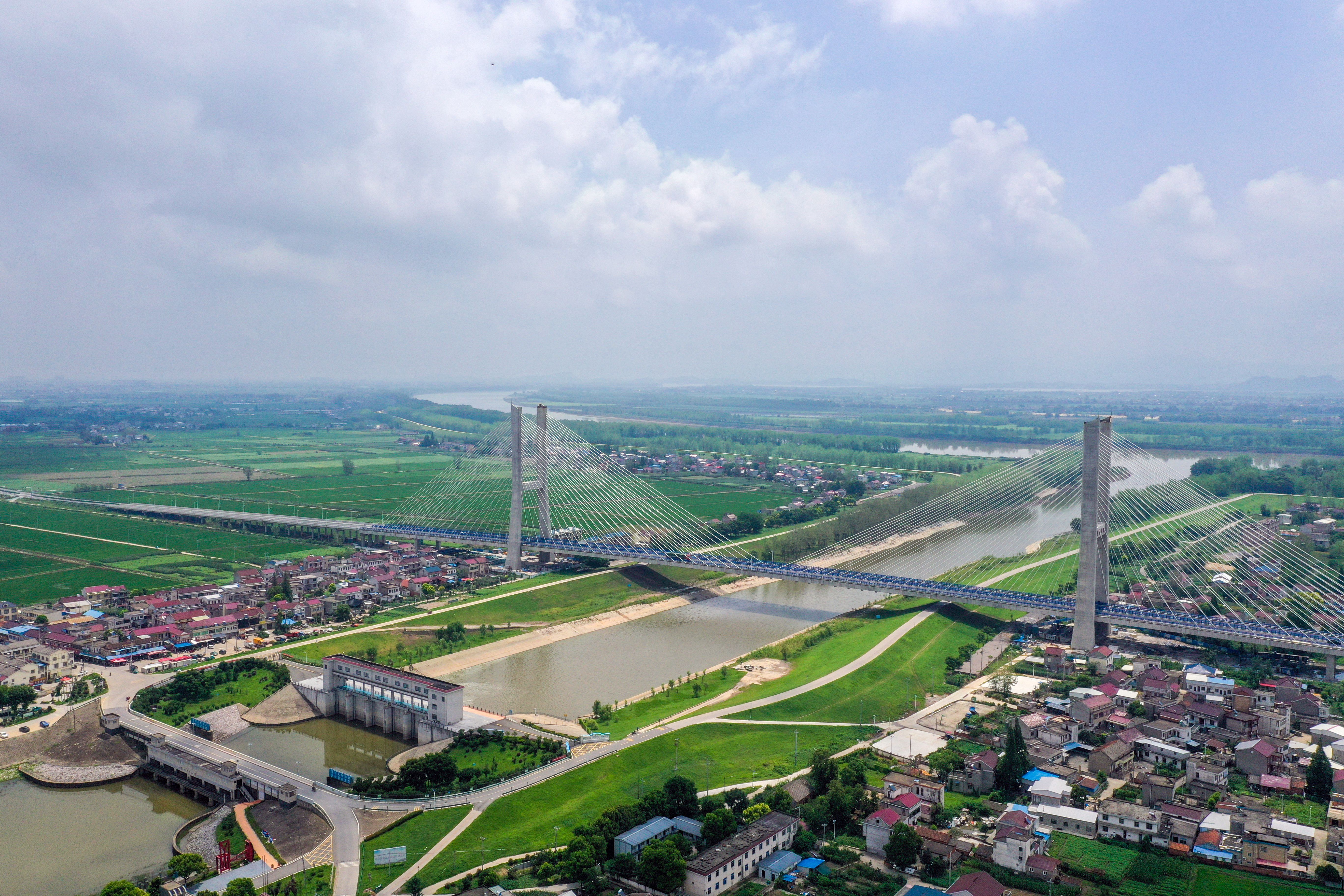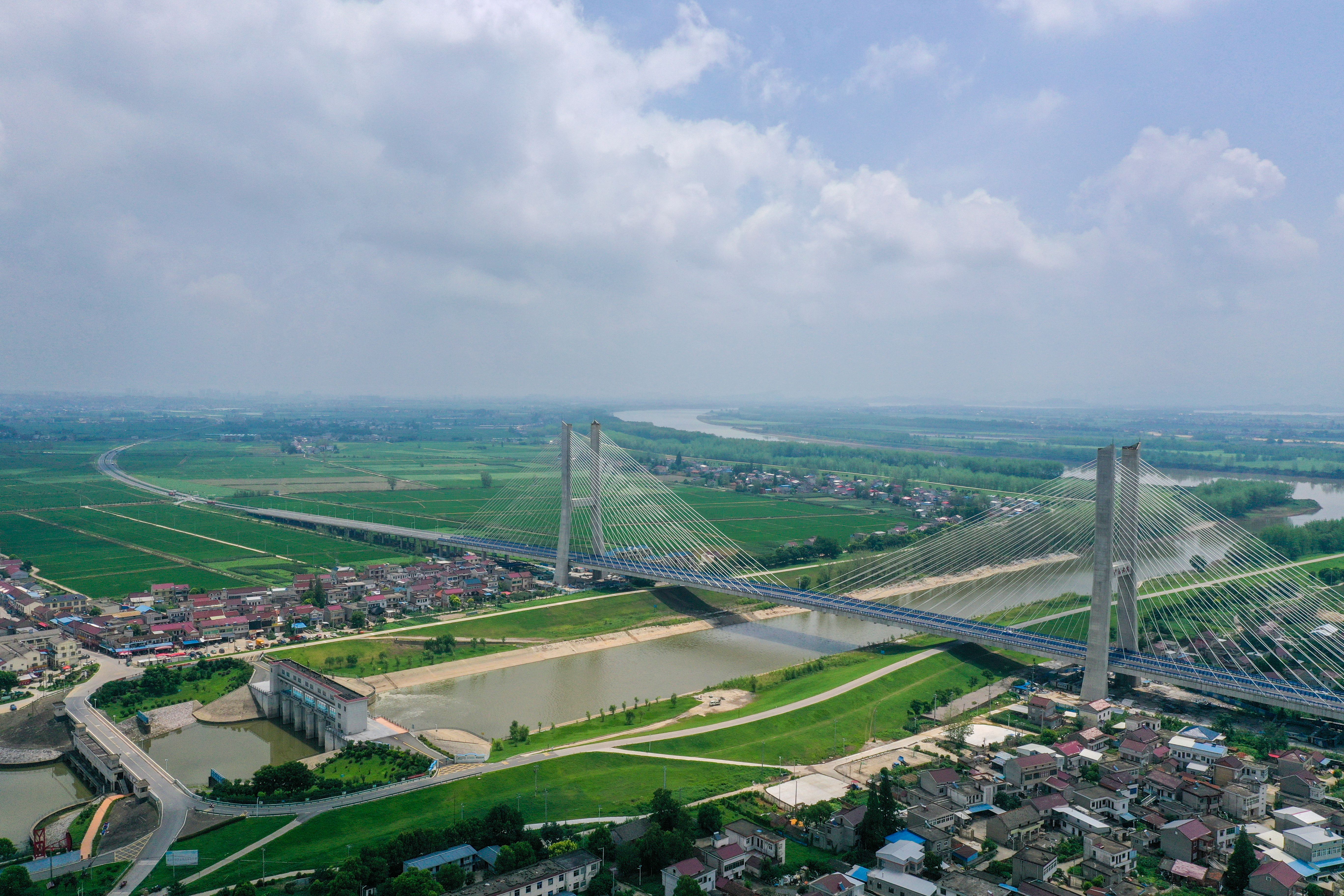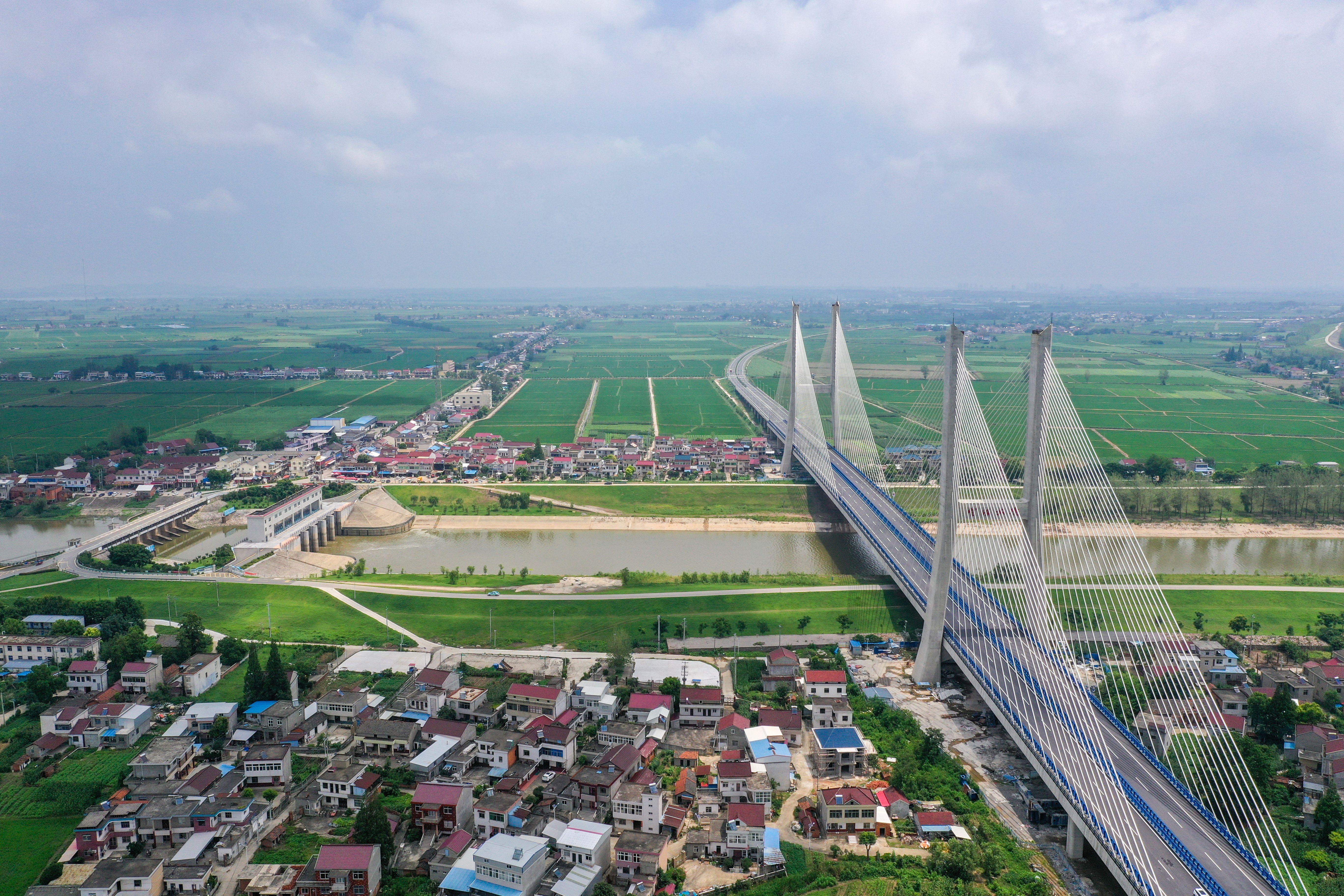 G347PPP項(xiàng)目是省政府“10313”行動(dòng)計(jì)劃重點(diǎn)工程,是G347在我省境內(nèi)最后的“斷頭路”,是安徽省重點(diǎn)交通工程建設(shè)項(xiàng)目。項(xiàng)目全長(zhǎng)13.248公里,控制性工程楊灣河特大橋(望江大橋)全長(zhǎng)1322米,主跨365米,由685米雙塔預(yù)應(yīng)力混凝土斜拉橋與637米東西引橋組成,主塔塔高110米,是安徽省在建同類(lèi)預(yù)應(yīng)力鋼筋混凝土斜拉橋第二大跨徑橋梁
