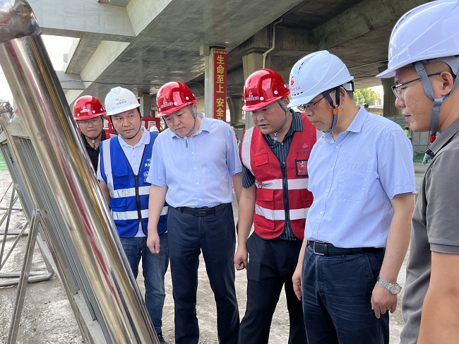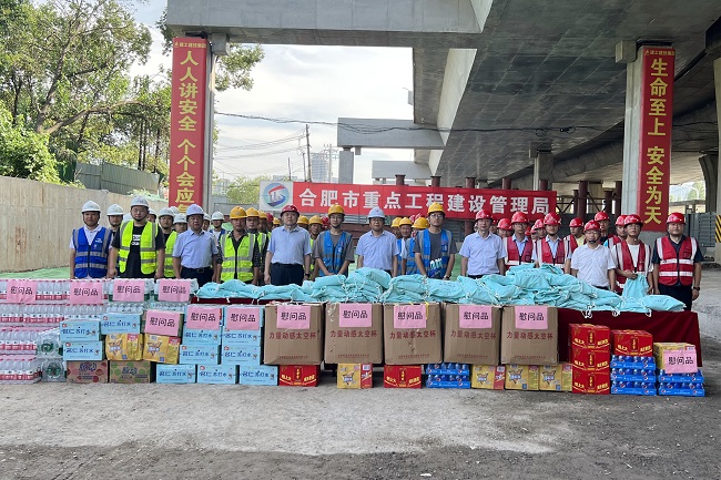 2023年7月14日下午,合肥市重點工程建設管理局局長張剛一行赴建工建投集團金寨路高架橋綁寬項目施工現(xiàn)場開展“夏日送清涼”慰問活動,建工建投集團黨委書記、董事長任杰,黨委委員、副總經(jīng)理王秋華等參加慰問。