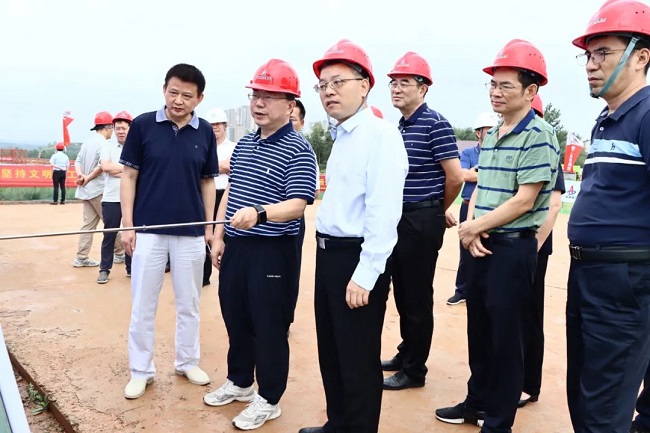 9月16日上午,省交通運輸廳黨組書記、廳長聶愛國赴宣涇高速01標調研督導,宣城市市委副書記、市長何淳寬,副市長董紅明,副秘書長武兆晟,市交通運輸局局長汪軍陪同調研。公司黨委委員、副總經理王秋華,二分公司總經理張立兵參加調研活動。