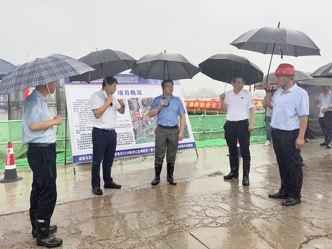 6月30日上午,繁昌區委書記瞿輝赴建工建投集團繁昌區G236改造工程項目二標段調研指導防汛工作,荻港鎮黨委書記姚士群、繁昌區交通運輸局黨委書記、局長高宗禮參加調研。