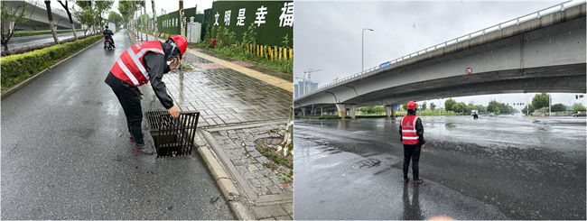 為應對本輪強降雨,錦繡大道(上海路-上東路)項目安排人員輪流值班巡查、嚴格執行汛期24小時值班制度,保障信息暢通,做到任務到崗、責任到人。密切關注施工現場雨情、水情變化,及時打開雨水箅助排,切實以實際行動共同筑牢防汛的“安全堤壩”,彰顯國企責任擔當。
