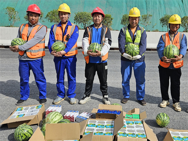 在戰高溫保生產的同時, 各項目部通過合理安排高溫天氣工作時間、設置防暑降溫納涼點、發放綠豆湯和防暑降溫藥品等措施,切實為建設者做好服務保障工作。