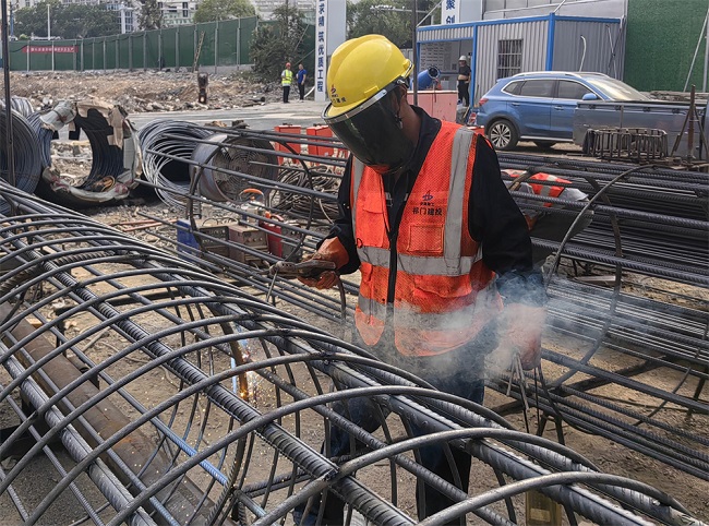 雖正值盛夏酷暑,祁門建投梅城大廈項目及低碳科創園項目的建設現場依然熱火朝天。頭戴黃色安全帽的鋼筋工人,戴著面罩及厚厚的手套,即使經受著高溫天氣和焊接火星的雙重夾擊,仍沒有一絲懈怠,全神貫注地焊著手中的鋼筋籠。熱浪中,工人們身上的衣服已是濕了又干、干了又濕,但手中的工作沒有絲毫的懈怠和疏忽,用頑強的毅力和不屈的精神對抗著高溫的侵襲。