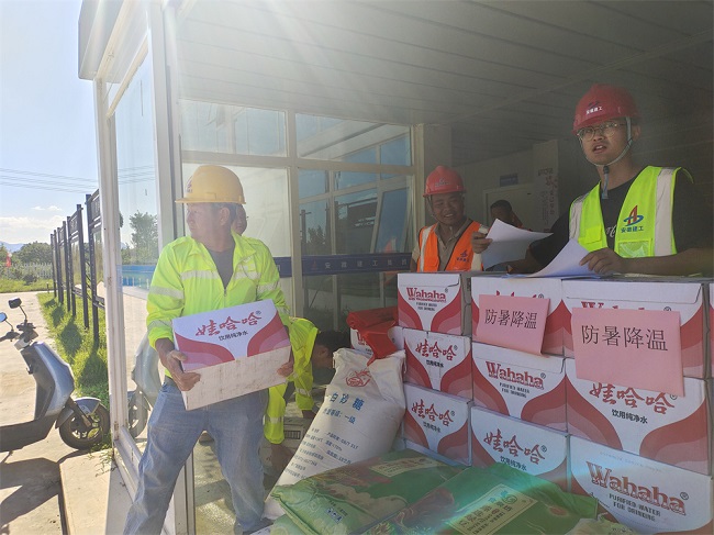 為保障戶外工作者安全度過高溫炎夏,五蒙高速05標項目多措并舉,全方位多角度為一線生產人員提供防暑降溫保障。利用班前會學習《夏季安全生產措施》,做好宣傳教育工作;為生產一線班組購買并及時發放藿香正氣液、人丹和鹽汽水等防暑降溫物資;設立“清涼驛站”、錯峰施工等方式,積極做好防暑降溫各項工作,為烈日下的堅守者撐起“遮陽傘”,用實際行動踐行責任擔當,為項目生產的安穩運行保駕護航。