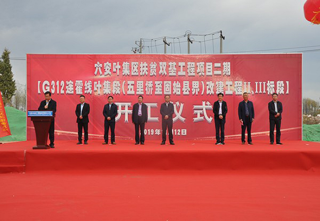 11月12日上午,由安徽路橋集團承建的六安市葉集區扶貧雙基工程二期[G312連霍線葉集段(五里橋至固始縣界)改建工程Ⅱ、Ⅲ標段]開工儀式順利舉行。