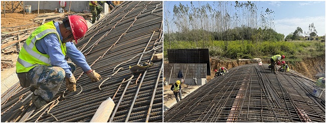 鋼筋是建筑的骨架、脊梁,起到支撐作用,就像人的骨骼一樣,綁扎過程中不能有絲毫馬虎。現場工人和技術人員頭戴安全帽,身穿反光背心,加班加點,巧手扎起“鋼筋鐵骨”,為拱圈澆筑做好充分準備,保證建筑骨架安全支起,全力以赴加快施工進度,高質高效快速推進項目建設。