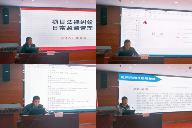 培訓(xùn)中,公司法律合約部、工程管理部、成本核算部、財(cái)務(wù)管理部結(jié)合集團(tuán)《項(xiàng)目管理類文件選編》進(jìn)行專題授課,分別圍繞項(xiàng)目法律糾紛日常監(jiān)督、工程招標(biāo)、成本管控和“三公經(jīng)費(fèi)”使用等方面為大家講授。公司紀(jì)檢室從案件查辦有關(guān)規(guī)范要求、日常監(jiān)督檢查注意事項(xiàng)等方面進(jìn)行了實(shí)務(wù)培訓(xùn)。最后,還開展了項(xiàng)目管理制度知識(shí)測(cè)試。