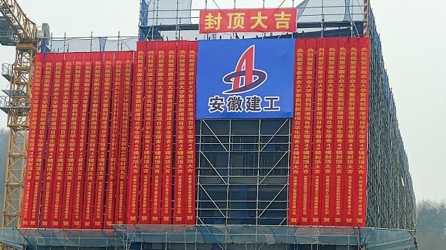 2025年1月24日,經過項目團隊的不懈努力和精心施工,安徽農業大學繁昌創新港項目宿舍樓屋面混凝土澆筑完成,標志著本項目重要施工節點——宿舍樓順利封頂。