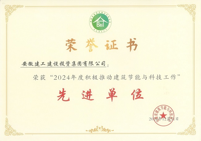 近日,建工建投集團喜獲安徽省建筑節(jié)能與科技協(xié)會頒發(fā)的“2024年度積極推動建筑節(jié)能與科技工作先進單位”稱號。