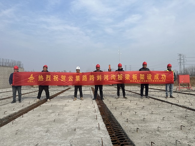 3月9日下午,隨著最后一片預制箱梁精準就位,建工建投集團淮北市高鐵西站綜合開發項目云集路跨劉河溝橋梁板架設圓滿完成。