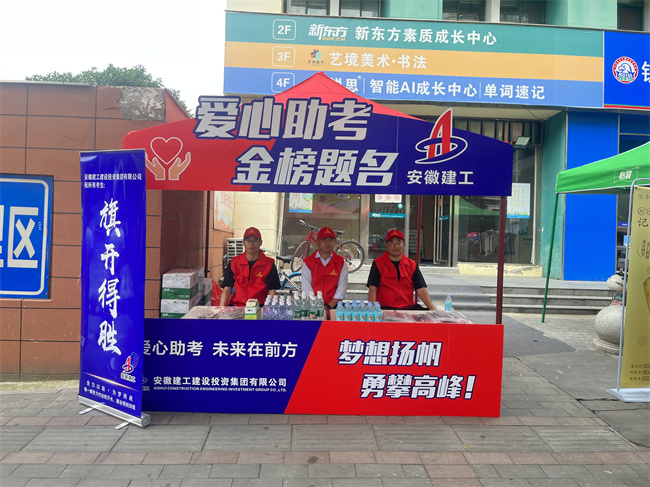 望江安建交通建設(shè)管理有限公司、望江安建安九公路建設(shè)有限公司在望江縣第三中學(xué)志愿點(diǎn)熱情地忙碌著,他們?yōu)榭忌鷾?zhǔn)備了礦泉水,在考點(diǎn)門(mén)口維持秩序、引導(dǎo)考生入場(chǎng),助力學(xué)子們安心應(yīng)考。