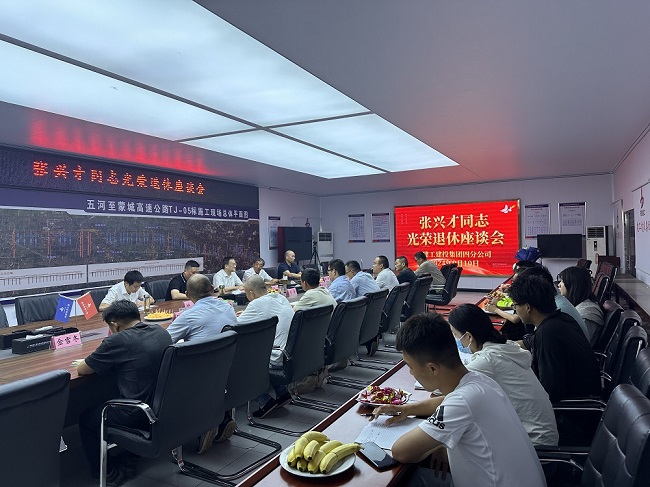 9月10日,建工建投集團四分公司在五蒙高速05標項目為張興才同志舉辦退休職工座談會。公司黨委副書記、工會主席干戈、四分公司領導班子及項目代表參加本次座談會。