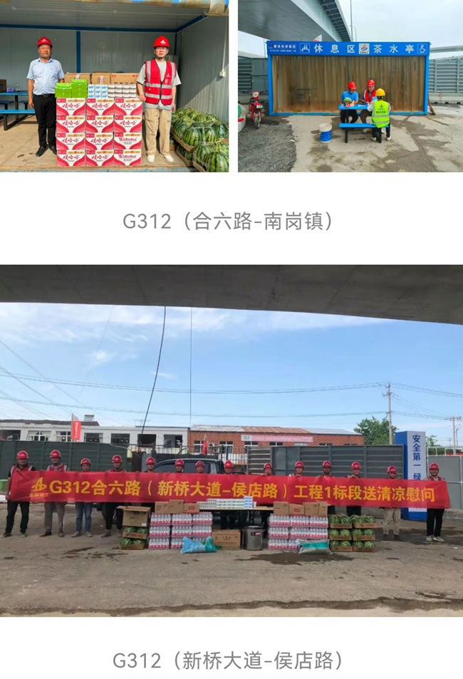 6月10日起,安建交建公司各項目分別組織安全部、綜合部等工作人員為奮斗在一線崗位的作業人員送去防暑藥品、西瓜、礦泉水、綠豆等防暑降溫物品,并在施工現場設置休息區、茶水亭等,為施工人員提供休息和避暑的場所,為奮戰在施工一線的員工送去關懷和問候。