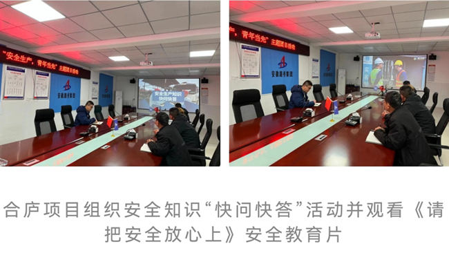 同時,各項目還開展了豐富多彩的主題活動。合周高速項目召開青年安全課堂,亳蒙高速項目組織安全消防應急演練,蚌埠G206項目開展主題辯論賽,合廬項目組織安全生產知識“快問快答”活動,進一步提高了分公司廣大青年職工的安全生產意識。