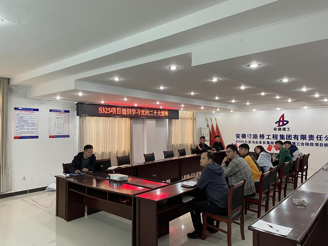 六安G312快速路項目召開黨的二十大精神學習宣貫會。會議要求,項目全體職工要堅持以黨的二十大精神為指引,把黨的二十大報告的新部署、新要求、新觀點轉化為具體工作舉措。圍繞項目建設工作,提煉特色做法,打造亮點工程,以實干實績實效向六安市民交出滿意答卷。