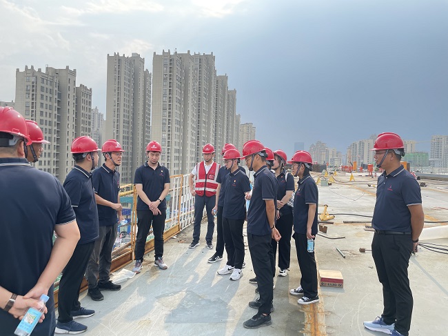 項目負責人詳細向黨員們介紹了項目概況、工程進度、項目在建設中攻克的困難和取得的成就。黨員們切實感受到一線建設者們在高溫天氣下的工作環境與狀態,紛紛表示要從他們身上學習黨員干部沖鋒在前、發揮先鋒模范作用的風采和攻堅克難、銳意進取的“工匠精神”,在今后的工作中將以更加飽滿的工作熱情、更加積極向上的工作態度、更加務實進取的作風形象,勇挑重擔、沖鋒在前,奮力爭當新時代高質量發展排頭兵。