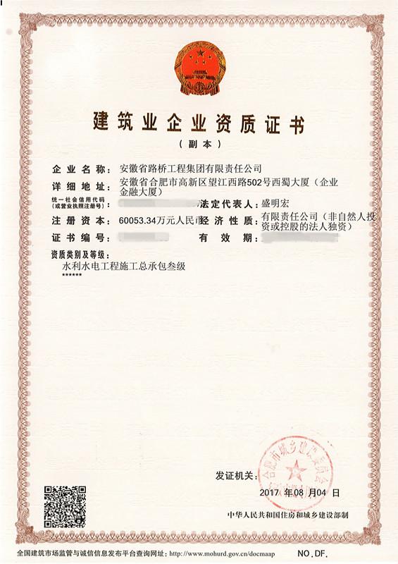 8月4日,經合肥市城鄉建設委員會核準,公司成功取得水利水電三級資質證書。該資質的取得,為安徽路橋集團進軍水利水電市場邁出了堅實的第一步,拓寬了公司的發展空間。同時也展現了檢測公司全體員工響應公司工作號召,努力拼搏、不斷進取的精神。