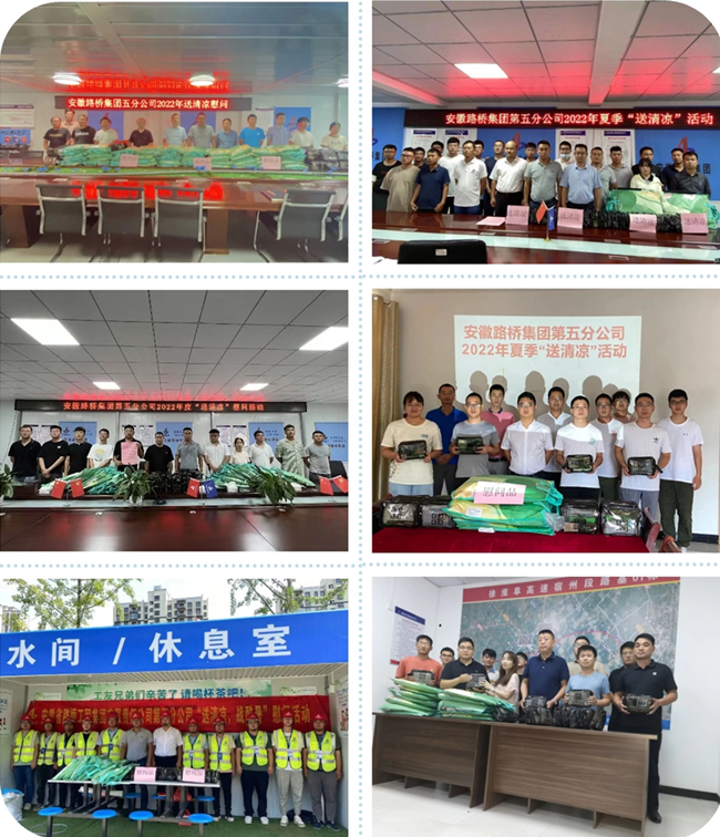 此外,五分公司所屬阜淮高速項目、舒城項目、合廬產(chǎn)業(yè)新城項目、G36寧洛高速項目也相繼組織開展為勞務(wù)隊伍“送清涼”活動。項目部精心為各施工隊伍配備了藿香正氣水、人丹、綠豆湯以及西瓜、牛奶等防暑降溫藥品和物品,并邀請當(dāng)?shù)厣鐓^(qū)衛(wèi)生院醫(yī)務(wù)人員前往項目施工現(xiàn)場,為一線工人提供義務(wù)血壓測量服務(wù)。多措并舉戰(zhàn)高溫、保安全、促生產(chǎn),在保障工人身心健康的同時,確保高溫天氣下項目安全生產(chǎn)平穩(wěn)運行。