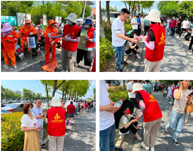 中考期間,每天早上7點(diǎn)半,合肥市軌道交通7號(hào)線項(xiàng)目志愿者來到合肥168中學(xué)考點(diǎn)執(zhí)勤,配合交警做好考點(diǎn)周邊交通疏導(dǎo)工作,維護(hù)好考點(diǎn)周邊交通秩序,保障考生順利進(jìn)入校園。同時(shí),在考場(chǎng)外發(fā)放扇子、礦泉水、濕紙巾、藿香正氣液、風(fēng)油精等物資,全力以赴助力中考。