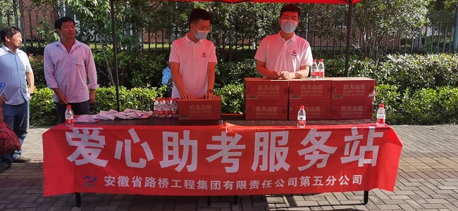 助力中考,盛夏圓夢(mèng)。6月15日-17日,安徽路橋集團(tuán)兩項(xiàng)目前往中考考點(diǎn)外,開展愛心助考活動(dòng)。