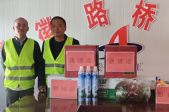 慰問過程中,公司領導詳細詢問關心職工在項目的生活、工作等情況,向作戰在酷暑天氣下卻始終堅守在崗位一線的職工表示感謝,將工會集中購買的藿香正氣液、西瓜、酸奶等防暑降溫用品分發到職工手中,并叮囑項目結合實際做好防暑降溫、疫情防控工作。