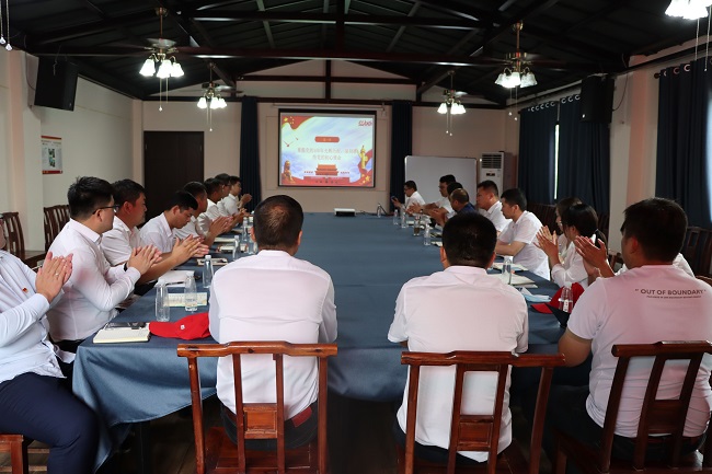 隨后,在紅旅小鎮會場,黨支部書記、副總經理盛軍為大家上了一堂以“黨員干部要從黨的百年光輝歷史中堅定初心使命”為題的黨課。黨課內容主要包含三個方面,一是要從重溫黨的100年光輝歷程,深刻感悟黨的初心使命;二是踐行初心使命、必須擔當作為;三是牢記黨史國史踐行初心使命。