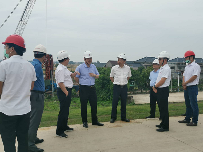 許克順一行實地查看了項目疫情防控工作開展情況和企業文化建設情況,并深入G347楊灣河特大橋樁基施工現場和S211PPP項目路基填筑、混凝土拌合站現場,了解項目進度,聽取了項目負責人工作匯報。