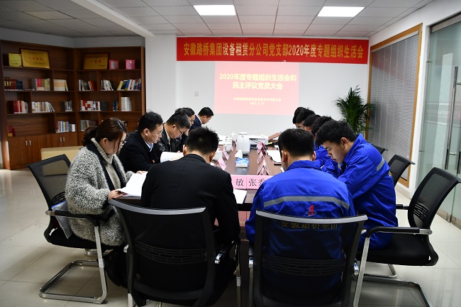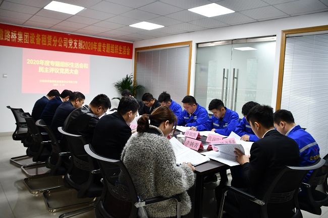 3月19日上午,設備租賃分公司黨支部召開2020年度組織生活會并開展民主評議黨員工作。公司黨委委員、紀委書記王勝利同志及黨工部相關同志到會指導,租賃公司全體黨員參加會議,積極分子列席會議。