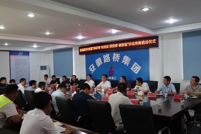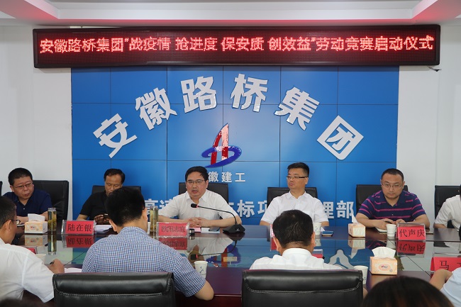 6月2日上午,安徽路橋集團“戰(zhàn)疫情、搶進度、保安質(zhì)、創(chuàng)效益”勞動競賽啟動儀式在蕪黃03標項目部舉行。公司黨委副書記、總經(jīng)理歐陽志宜,公司黨委委員、紀委書記王勝利,各子分公司相關領導、工會主席及蕪黃項目員工等30余人參加了儀式,其他參賽項目通過視頻連線的方式全程參與活動。儀式由公司工會副主席陸在銀主持。