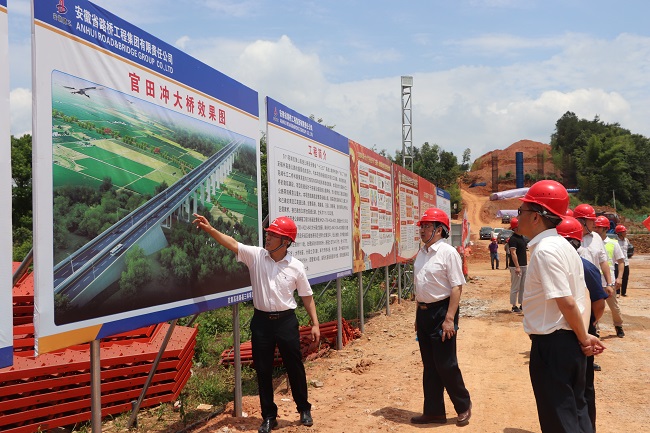 蕪黃項目負責人作為參賽項目代表發(fā)言宣誓,公司黨委委員、紀委書記王勝利向參賽項目代表授旗,公司黨委副書記、總經(jīng)理歐陽志宜宣布安徽路橋集團“戰(zhàn)疫情、搶進度、保安質(zhì)、創(chuàng)效益”勞動競賽正式啟動。儀式結束后,參會人員觀摩了蕪黃03標官田沖大橋等施工現(xiàn)場。
