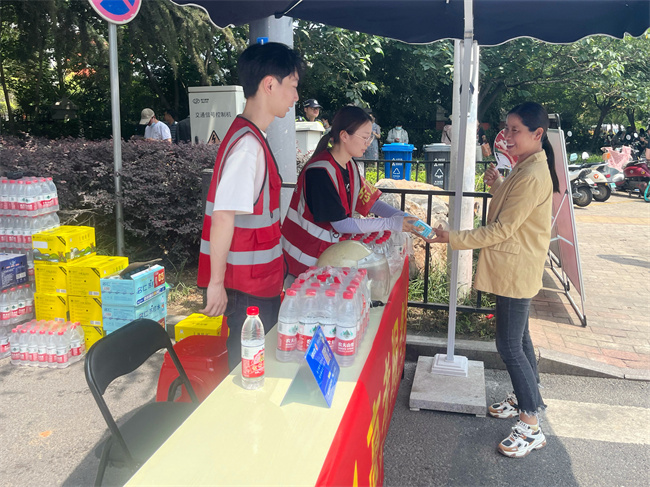 考點外,三分公司機關黨支部為考生及家長們準備了充足的瓶裝水、扇子、考試工具等用品,同時還配備了防暑降溫藥品等應急物資,全力以赴助力高考。