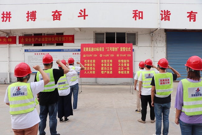 會后,項目部組織開展了“三號聯創”集體宣誓活動。