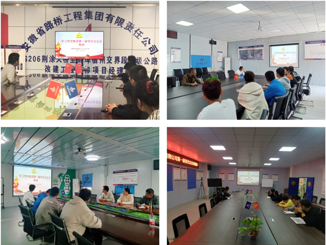 9月27日,中共安徽省路橋工程集團有限責任公司第一次代表大會勝利召開。為切實將公司全體干部職工的思想和行動統一到進入新發展階段、貫徹新發展理念、構建新發展格局的戰略決策上來,公司所屬各子分公司、項目部積極組織學習宣貫公司第一次黨代會精神,通過專題會議、學習會議、精神宣講等形式,層層傳達、形成共識、凝聚力量,將會議精神落實到實際工作之中。