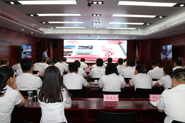 表彰會后,公司黨委書記、董事長盛明宏以“學黨史 悟思想 辦實事 開新局,以優異成績迎接建黨一百周年”為題上了一堂黨史專題黨課。盛明宏同志從新民主主義革命、五四運動和馬克思主義在中國的傳播、中國共產黨的成立、在土地革命戰爭中開辟農村包圍城市的道路、在抗日戰爭烽火中發展壯大等5個方面,詳細講解了中國共產黨從成立到發展壯大的相關內容,并結合公司當前的理論學習、作風建設、生產經營等現狀,要求大家進一步開拓思路,謀劃發展,廣大黨員干部要以身作則,加強黨史學習,堅定理想信念,提升精神境界,敢于擔當作為,提高素質能力;要在學習黨史過程中,悟思想、辦實事,真抓實干,務求實效,不斷創新,把思想統一到公司生產經營發展上來,以實際行動和優異成績慶祝建黨100周年。