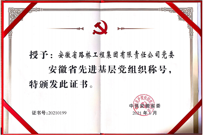 喜報!安徽路橋集團黨委榮獲安徽省“先進基層黨組織”稱號