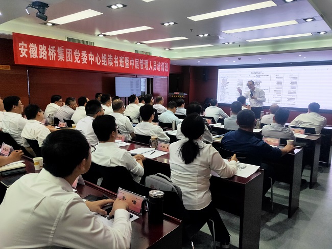 為加強(qiáng)干部隊(duì)伍建設(shè),提升干部綜合素能,5月8日,安徽路橋集團(tuán)黨委中心組讀書班暨中層管理人員培訓(xùn)班正式開班。此次培訓(xùn)采用分階段授課形式進(jìn)行,北京大學(xué)授課老師、公司領(lǐng)導(dǎo)、全體中層管理人員及優(yōu)秀項(xiàng)目負(fù)責(zé)人代表共計(jì)90余人參加培訓(xùn)班開班典禮。