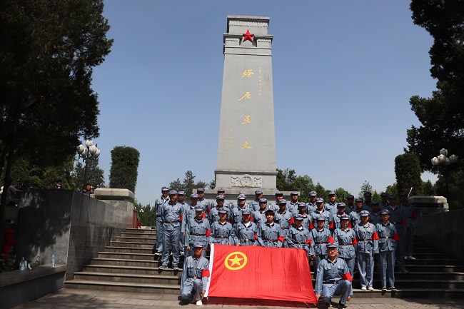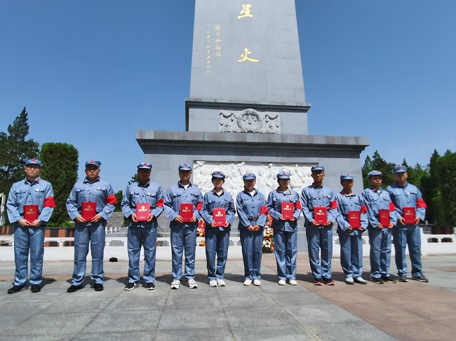 在統(tǒng)一換上紅軍服裝后,青年團(tuán)員們首先來(lái)到金寨紅軍文化廣場(chǎng)。在革命烈士紀(jì)念塔下,面對(duì)鮮艷的中國(guó)共產(chǎn)主義青年團(tuán)團(tuán)旗,公司團(tuán)委書記帶領(lǐng)到場(chǎng)青年團(tuán)員重溫入團(tuán)誓詞,牢記初心使命,緬懷革命先烈,傳承五四精神,并對(duì)榮獲公司2020年度“五四紅旗團(tuán)支部”與“優(yōu)秀團(tuán)員”的集體與個(gè)人進(jìn)行了表彰。