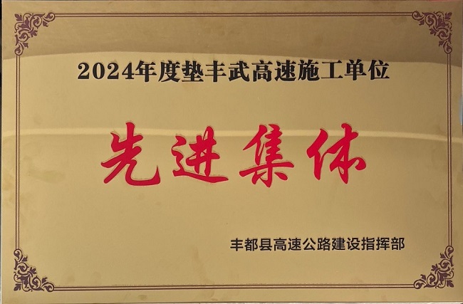 建工建投集團重慶墊豐武高速TJ04標項目榮獲豐都縣交通運輸委員會“先進集體”稱號和豐都縣高速公路建設指揮部“2024年度墊豐武高速施工單位先進集體”稱號。