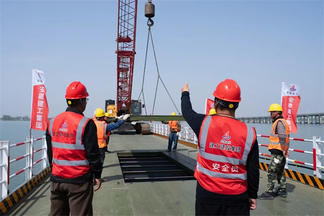 4月8日上午,隨著最后一跨橋面板精準(zhǔn)吊裝到位,由安徽建工建設(shè)投資集團(tuán)投資承建的S20長豐至固始高速公路霍邱至皖豫界段02標(biāo)項(xiàng)目迎來重大進(jìn)展——城西湖特大橋鋼便橋順利合龍,標(biāo)志著項(xiàng)目物資運(yùn)輸和機(jī)械調(diào)度的“生命線”全線貫通,為后續(xù)城西湖特大橋主體工程推進(jìn)奠定了堅(jiān)實(shí)基礎(chǔ)。