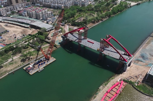 目前,該項目已完成鋼箱梁主體、橋面板、拱肋合龍等主體工作。“五一”假期里,項目啟動吊桿張拉作業,同步推進水平系桿張拉與涂裝收尾,實現多專業立體施工,向著完成全橋主體施工節點發起最后沖刺。