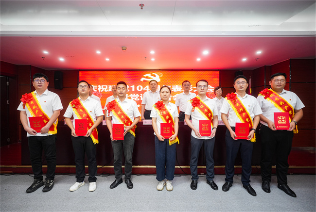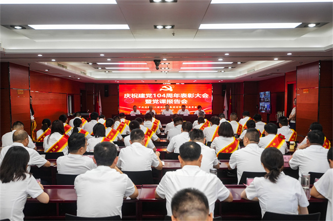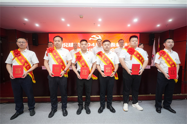 6月26日上午,建工建投集團召開慶祝建黨104周年表彰大會暨深入貫徹中央八項規定精神學習教育專題黨課報告會,隆重表彰過去一年在公司各條戰線上忠誠擔當、扎實苦干、奮發有為的先進基層黨組織、優秀共產黨員和優秀黨務工作者以及在宣傳工作中涌現出來的先進集體和先進個人。公司黨委書記、董事長任杰作了題為《堅定信念錘煉作風 推動建工建投集團各項工作全面進步全面過硬》的專題黨課。公司領導班子為獲獎代表頒獎,黨委副書記、工會主席干戈主持會議。