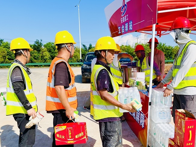 6月30日,建工建投集團寧九高速項目在拌合站工地設立工會驛站,并對臨建隊伍開展“送清涼”慰問活動,為高溫下堅守的一線建設者送上關懷與保障。