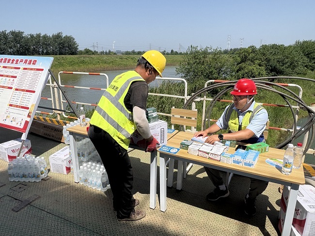 繁昌區G236項目、靈璧雨污管網項目同步啟動高溫施工安全專項保障方案。一方面,建立高溫預警響應機制,通過錯峰施工、強制休息等制度,保障一線建設者的健康安全;另一方面,組織專職安全員開展全線動態安全巡查,精準排查高溫作業隱患,同時統籌設置標準化臨時休憩點,為建設者提供舒適的休息環境;此外,按班組配發含藿香正氣水、礦泉水等防暑應急物資包,全方位筑牢高溫作業下的健康防護屏障。