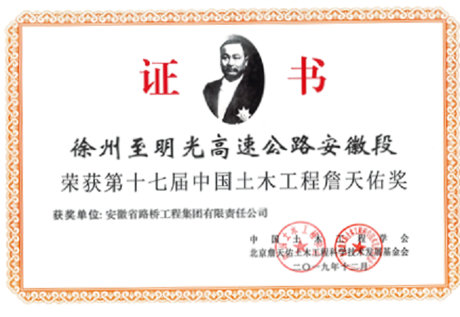 9月22日,中國土木工程學會2020年學術年會暨第十七屆中國土木工程詹天佑獎頒獎大會在北京召開,公司參建的徐明高速公路安徽段榮膺該獎項。