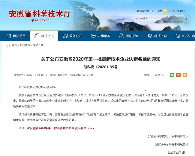 在路橋集團的統一部署下,在各部門大力支持配合下,歷時一年多,從資料收集、信息匯總到正式申報,本次高新技術企業認定工作最終圓滿完成。安徽省科學技術廳、安徽省財政廳、國家稅務總局安徽省稅務局聯合下發皖科高[2020]35號文件正式批準檢測公司獲得高新技術企業認定。