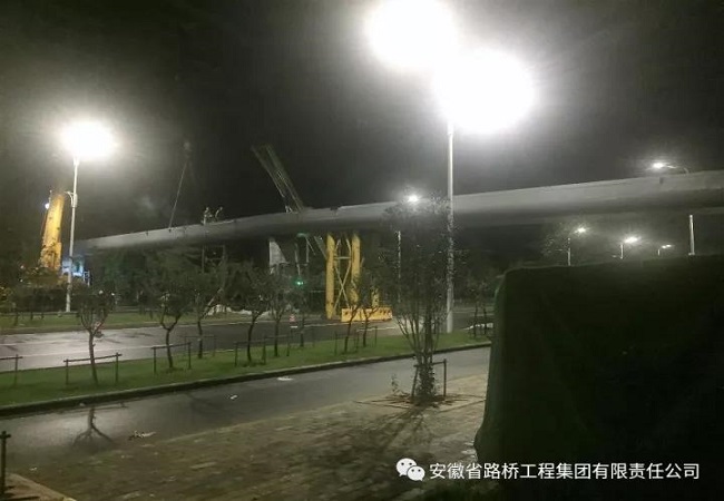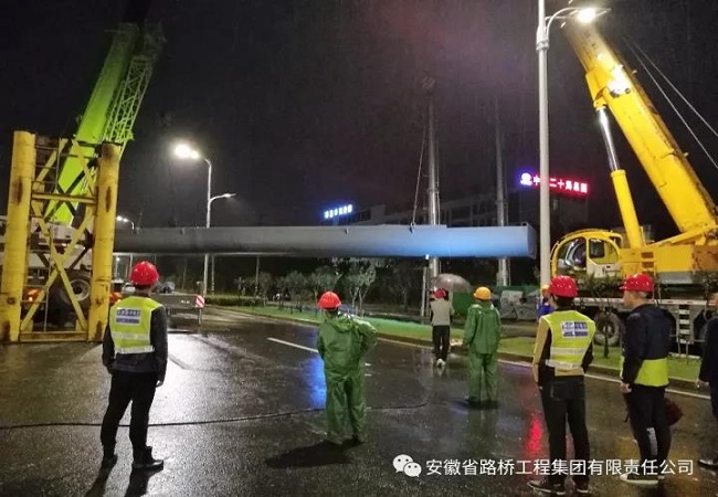 錦繡大道項(xiàng)目人行天橋鋼箱梁正式開始安裝