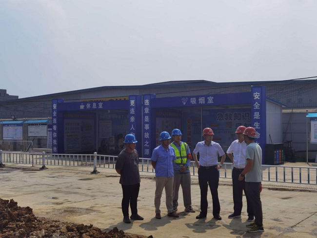 盛明宏深入現場查看項目施工情況,聽取了項目管理人員關于施工進展、現場標準化建設等情況的匯報。在聽取匯報后,盛明宏對項目當前的工作給予肯定,他要求,一要加強安全生產工作,提高安全文明環保意識,做好夏季防暑降溫和防臺防汛工作,保障施工人員身體健康;二要合理組織施工,加強質量管理,細化每個施工節點控制,保質保量按時完成建設任務;三要按照集團項目標準化建設的要求,合理安排、精心組織,形成大干快上的良好氛圍,進一步加快項目的施工進度。